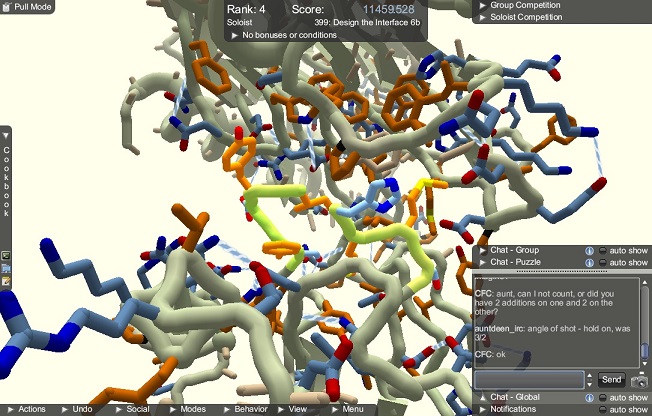 所有的人和电脑都给予酵素蛋白质YPL067C的电子密度图(electron density map)和序列(sequence),然后进行挑战,来做出它的形状。晶体学家和学生是独立工作,但游戏玩家则是组成一个团队。