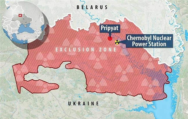 图中标注的是受核泄漏影响的地区,当地居民被迫撤离,高剂量放射线将危害人类健康。