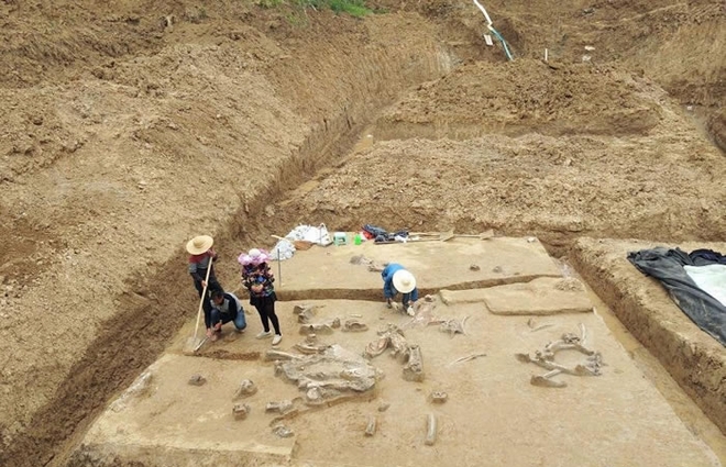 江苏省泗洪县发现距今五六万年的淮河古菱齿象骨骼化石