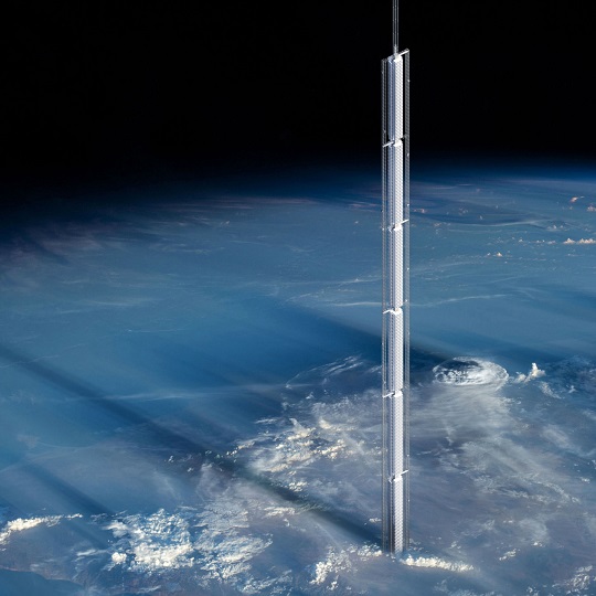 摩天大楼会被悬挂在一颗环绕在地表上方5万公里(31,068英里)的小行星。建筑物本身会被放置在地表上方大约32公里(20英里)处。