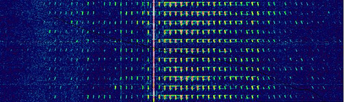 “蜂鸣器(The Buzzer)”的瀑布显示,UVB-76广播电台在4,625 KHz,下边带明显地被压制。