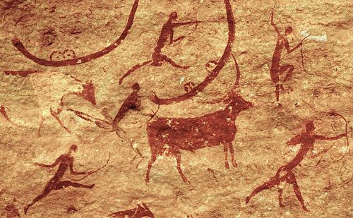 在阿尔及利亚撒哈拉沙漠的阿杰尔高原(Tassili n’Ajjer)国家公园的新石器时代岩石艺术。Patrick Gruban, Munich, Germany / CC BY-SA 2.0.