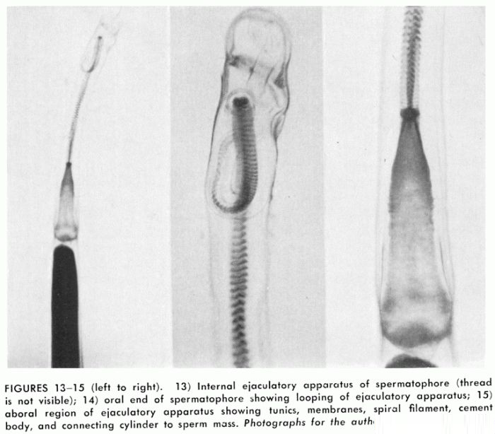 据信咀嚼精子囊袋是促使它们强力射出并将精子嵌入到这位女士整个嘴里。结果是口腔内部成为这些精子能实际渗透的少数几个地方之一。