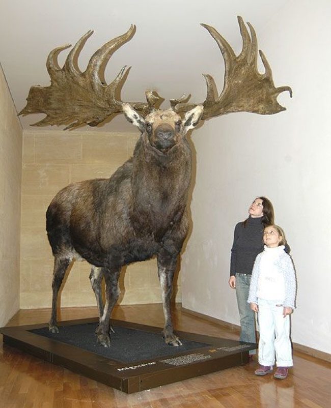 巨鹿:爱尔兰的麋鹿或巨鹿出现在大约200万年前。后来因为森林开始蔓延到开阔的空间,巨型鹿的大鹿角(超过5米宽)使他们无法穿过浓密的树枝而死亡。