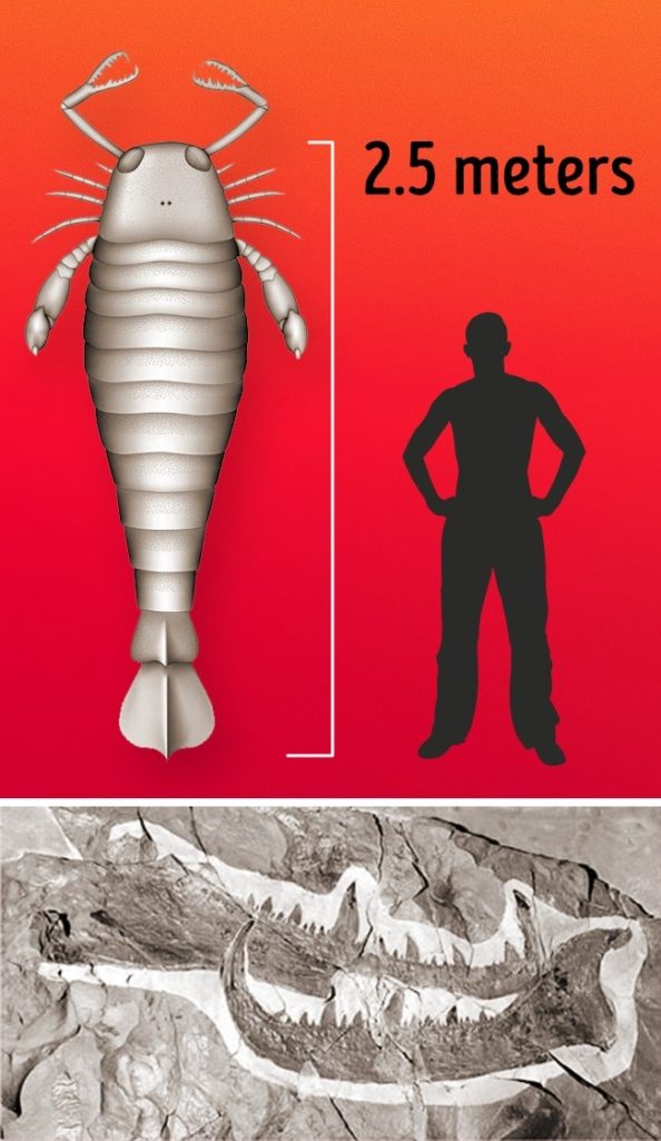 Merostomes:这个叫Merostomes是地球上已知最大的节肢动物。他们住在2亿4800万年到5亿1000万年前,可以长到2.5米。