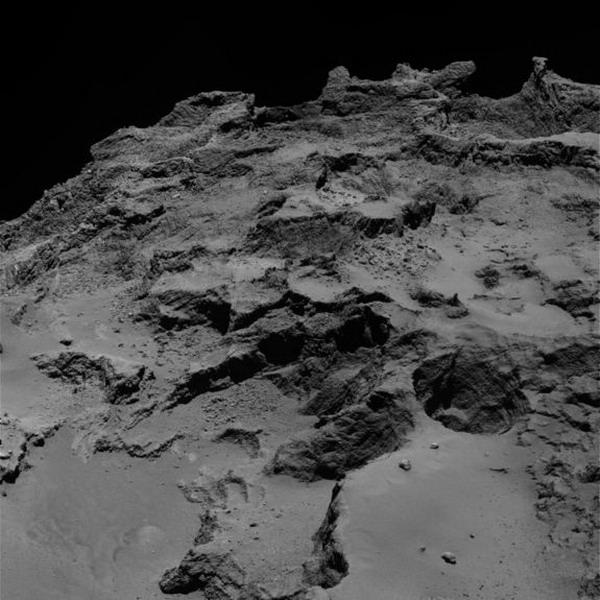 近距离拍摄的67P彗星表面结构,最新研究显示,这颗彗星的“橡皮鸭”外形是由两颗彗星碰撞形成的。