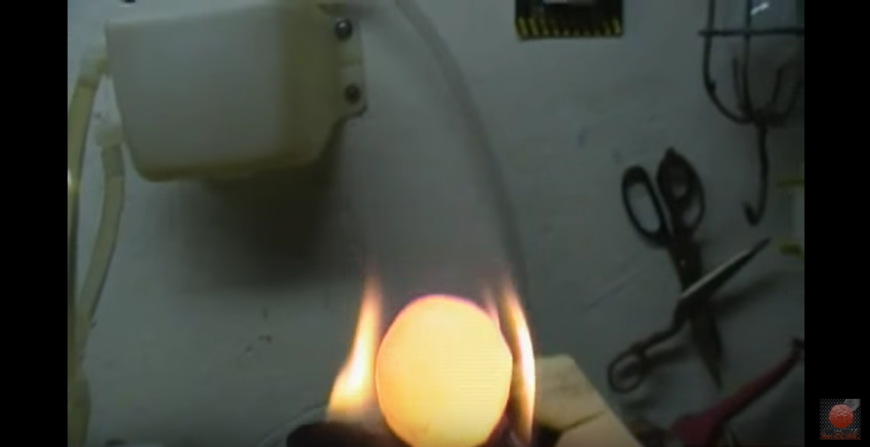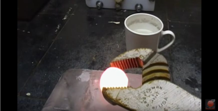 先把这颗镍球烧到发红,像一颗小太阳一样
