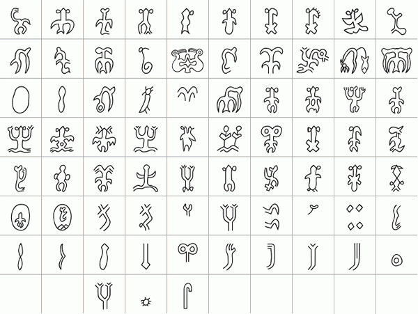 真正的朗格朗格文字是以交替方向的方式书写,这种书写方式称作牛耕式转行书写法(Reverse Boustrophedon)。在木匾1/3的地方,文字刻在雕刻在木头上的浅槽中。这些象形文字本身是人类,动物,植物,人造物和几何形状的轮廓。很多人和动物图案头上都有一些特别的凸出,可能代表眼睛。’