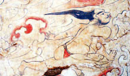 这座坟墓的墙壁,可回溯到1,400年前,与这段时间的其他坟墓似乎没有任何艺术相似之处。特别不清楚的是,在冲向由不明身份的天蓝色野兽守卫的墓室时,为什么风神赤裸的出现比穿着生日礼服还多。