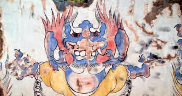 在中国出土的1,400年古墓,带有“蓝色怪物”的壁画