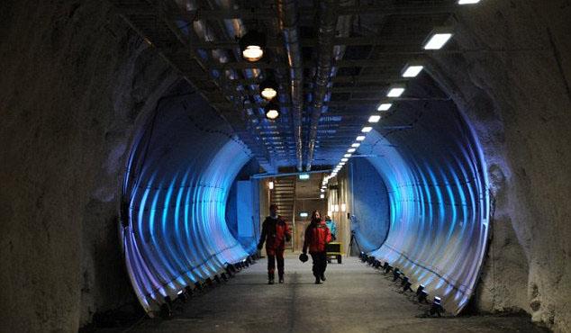 从外面看“世界末日种子库”,并不觉得它很大。但是当你走过那长约120 米的隧道,而四周都是凝结的冰霜,这时,你就会感觉到它的深不可测。
