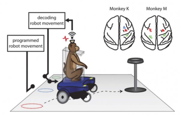该研究由杜克大学健康中心的大脑界面专家Miguel Nicolelis领导,它也是第一个成功利用BMI帮助整个身体进行移动的研究。研究人员们在猴子的大脑中植入了无线的高吞吐量多通道设备后,向人们演示猴子能够利用约300个神经元自由地控制电动轮椅。该设备允许它们实时想象轨道并利用无线连接导航到目标处。