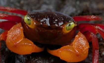 吸血鬼螃蟹:吸血鬼螃蟹因为其暗色的身体、紫色或者红色爪子以及惊人的黄色眼睛而得名。通常,这些色彩都是卡通片吸血鬼的基本配色方案。在科学家研究它们之前,它们一直都是宠物市场的宠儿。研究人员后来意识到,这一物种有可能因为过度收藏和栖息地减少而处于濒危状态。