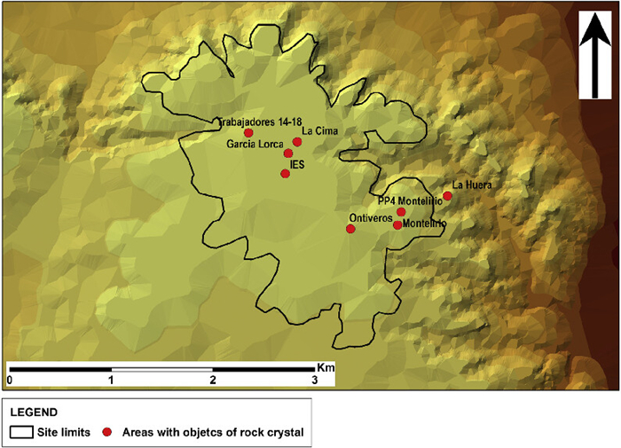 图中红点标识为巨石墓中发现一系列非凡的水晶武器的8处地点。(L.