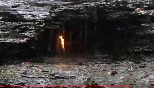 瀑布下洞穴中的“永恒之火”。(视频截图)