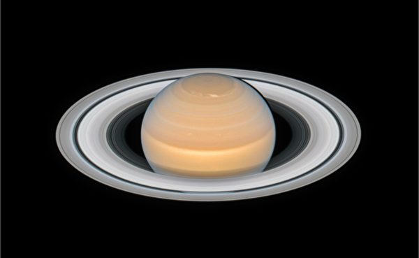 而土星的招牌──土星环也依旧令人惊艳。NASA的图片显示,土星环朝向地球倾斜,让人们可以一窥它明亮、壮丽的结构。