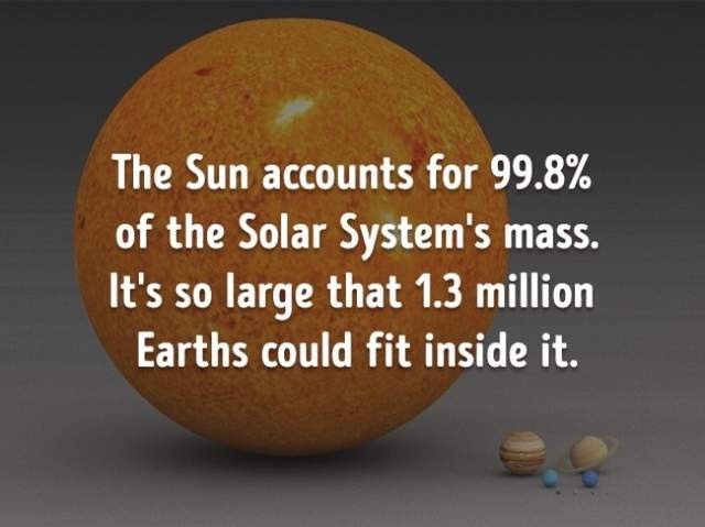 6.太阳占了太阳系99.8%的质量,而且它的体积大到可以容纳130万颗地球!