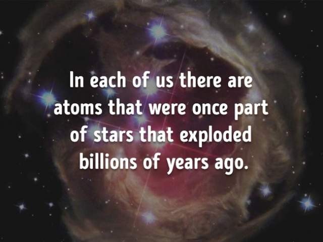 9. 我们每个人身上都有几十亿年前恒星爆炸后留下的原子。