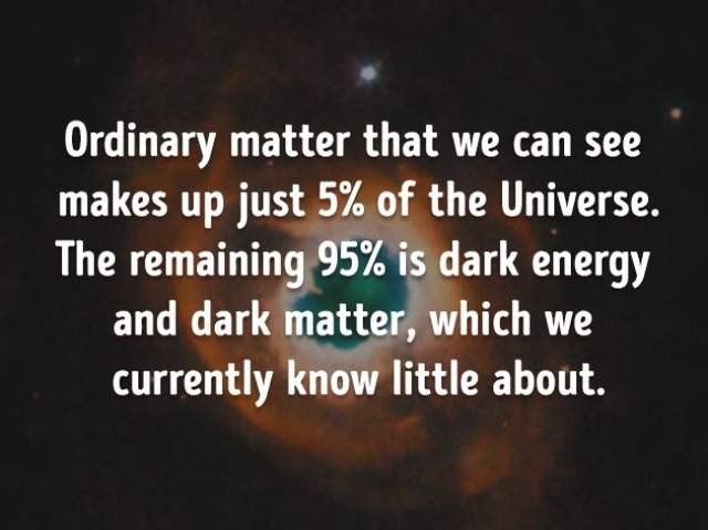 10. 我们所看得见的东西其实只占了宇宙的5%,剩下还有95%的暗能量与暗物质是我们所知甚少的。