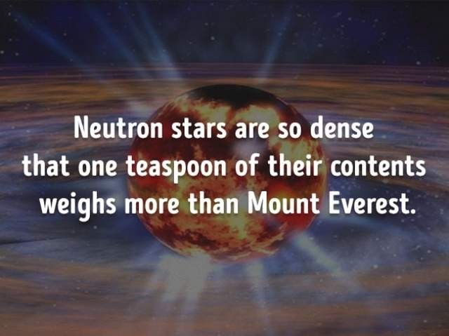 11. 中子星的密度极高,高到只要一茶匙大小的中子星,重量就超过整个圣母峰!