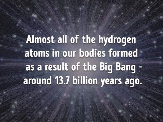 4. 我们身体里所有的氢原子都是137亿年前宇宙大爆炸后的产物。