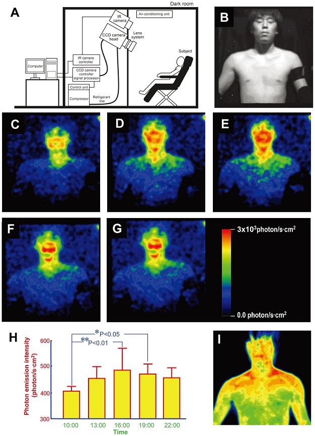 “按照字面上说的,人体会发光。”东北工业大学的团队将他们的研究发表在公共科学图书馆发行的期刊上,“由身体发出的光的强度是比我们肉眼的敏感度低1000倍。”