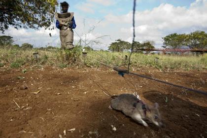 在莫桑比克某地,巨鼠正在探测地雷和其他爆炸物。