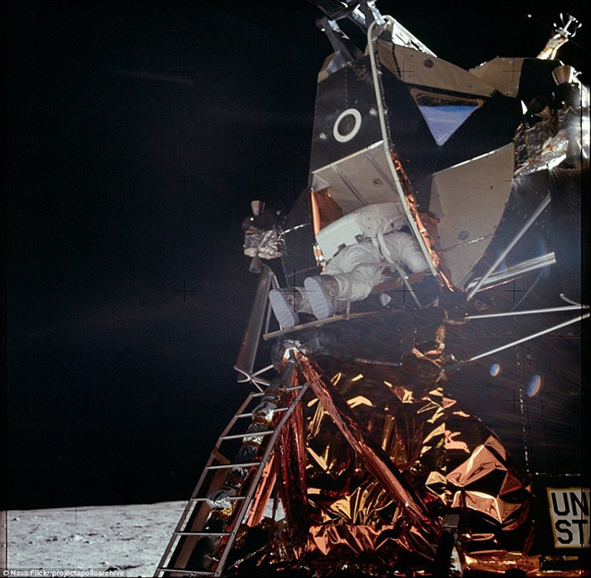 有关尼尔·阿姆斯特朗在阿波罗11号任务时“踏出自己一小步”的图片非常好认,比如上图。在NASA的档案库中还保留着许多更加非同寻常的图片,都是由宇航员用胸前的哈苏相机所拍摄。
