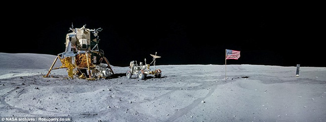 根据宇航员在登月任务中对周围情况的详细描述,成功地将不同的画面用软件拼接到一起。这张图片的素材来自阿波罗17号任务。阿波罗计划的档案于1999年建立,借助高解析度扫描仪,所有的图片都转换为数字形式。每张图片的平均分辨率达到16MP,非常适合放大和编辑。