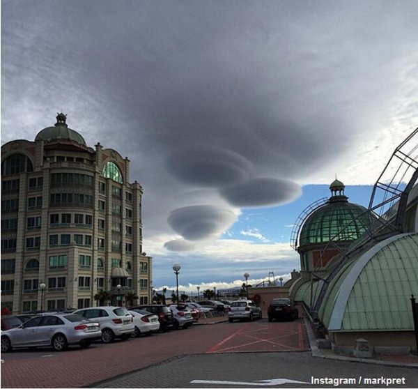 这些炫酷的形成物叫做“荚状云”,其圆形外观好像隐形眼镜镜片一般,并且它们是完全人畜无害的。荚状云是一种山帽云,形成于高海拔地区,通常贴近大山旁,例如开普敦的桌山。