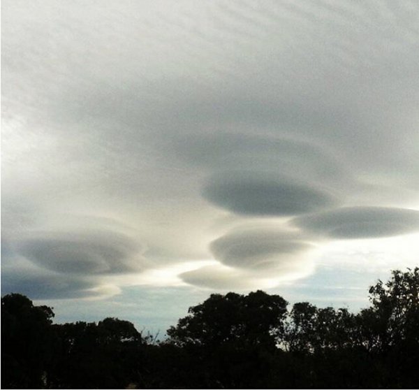 附注:就伪装一架真实的圆形UFO而言,这些云朵有着最完美的形状和大小——尽管这完美的UFO形态的云雾反而使它们无法成为最不引人注意的伪装。如果有外星人正阅读此文的话,我们还是推荐你们继续使用标准的隐身衣——哥们儿,这更加高效。