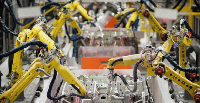 工人:中国研制的机器人现已代替一些人类工作,首个机器人工厂在广东东莞建造,目前,这家机器人工厂成功地解放了90%的人类劳动力。自2014年9月以来,东莞505家工厂对机器人项目投资4.2亿人民币,旨在替代3万多个工人工作。