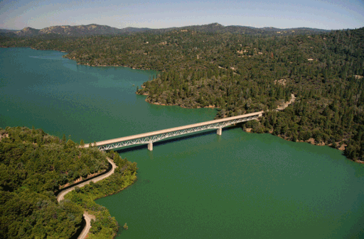 位于奥罗维尔湖东侧的Enterprise Bridge,原本泡在河底的桥墩全都露了出来。