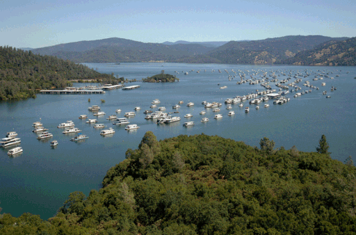 这个位于北加州群山之间的奥罗维尔湖(Lake Oroville)的观光码头,三年之间水位大幅下降,别说是观光游览了,光停船湖面就快满了。
