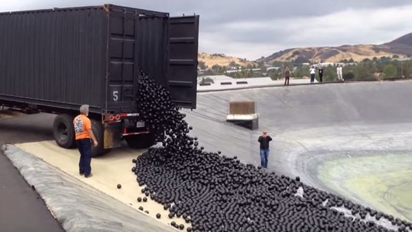 为了避免市民们面临断水危机,加州洛杉矶市府决定往水库里倒......巧克力球?!