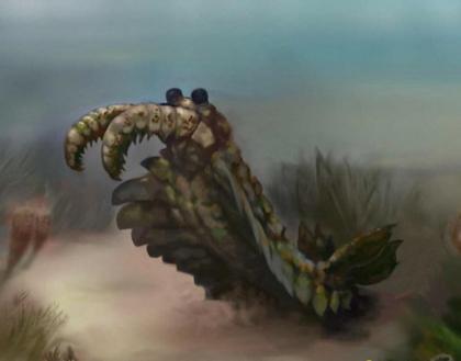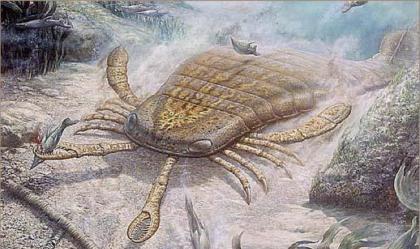 巨型鲎:这是迄今发现体型最大的三叶虫物种,体长可达到60厘米,它们生活在大约5亿年前古生代时期,在海底吞食腐烂生物尸体。它非常类似于鲎,长有厚盔甲外壳和复眼,身体呈节段结构。巨型鲎和其它三叶虫物种是相对简单、适应性较强的生物,存活了3亿年时间。
