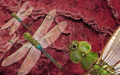巨大蜻蜓:现代的蜻蜓体型较小,但是它们的祖先却十分庞大,远古时期巨大蜻蜓翼展达到60厘米,身体长度接近40厘米。这种庞大身体让研究人员猜测它可能以青蛙、松鼠大小的动物为食。这种体型庞大的史前蜻蜓灭绝的原因是地球大气层数百万年前开始氧气含量升高。