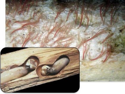 研究人员们用CT扫描仪扫描了一亿多年前蛇颈龙(海洋爬行类)和海龟的化石,他们发现化石上的虫孔与现代食骨蠕虫钻出来的孔很像,这表明当时这个大的双足龙死的时候曾出现过与食骨蠕虫很相似的生物。