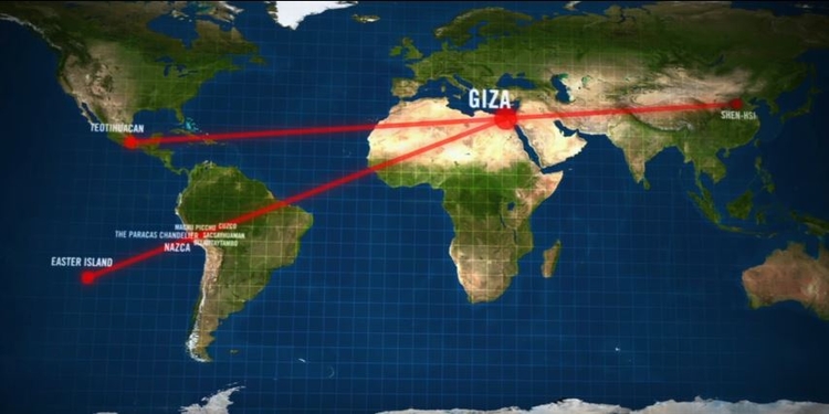 这些地理位置的安排可以视作巧合吗?这些地方是被古代人随机排放位置的吗?或者有没有可能古代文明像是埃及(Egyptian),马雅(Maya),奥尔梅克(Olmec),印加(Inca),和其它更早的古文明,早就将他们的城市,庙宇和纪念塔,座落在地球表面特定的地理位罝,创造出不可思议的彼此关联性,只是才在近代被研究者们发现而已?