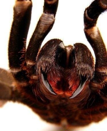塔兰图拉毒蛛:塔兰图拉毒蛛或许是最出名的,因为许多电影都将它们设定为诱发蜘蛛恐惧症的主角。塔兰图拉毒蛛属于Theraposidae家族,这一种族目前已知拥有大约900个物种。有趣的是照片中这种毒蛛的嘴巴只能够吮吸而无法咀嚼,这并不意味着它们只以液体食物为食,猎物的固体部分都能够被它们的消化液消化掉。