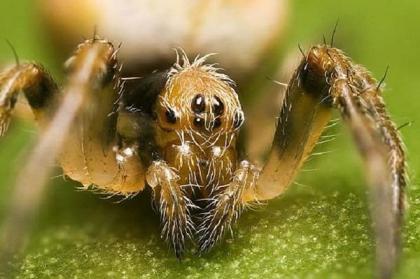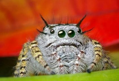 跳蛛:这些小家伙色彩鲜艳,它们独特的眼部构造让它们看起来不太像地球生物。跳蛛以其活动方式而得名,它们会坚持从一个地方跳到另一个地方,当然还会吐一根丝作为保险。它们跳跃的高度能够达到身体的20到80倍。它们几乎能够在任何光滑的表面攀爬,比如说玻璃等。
