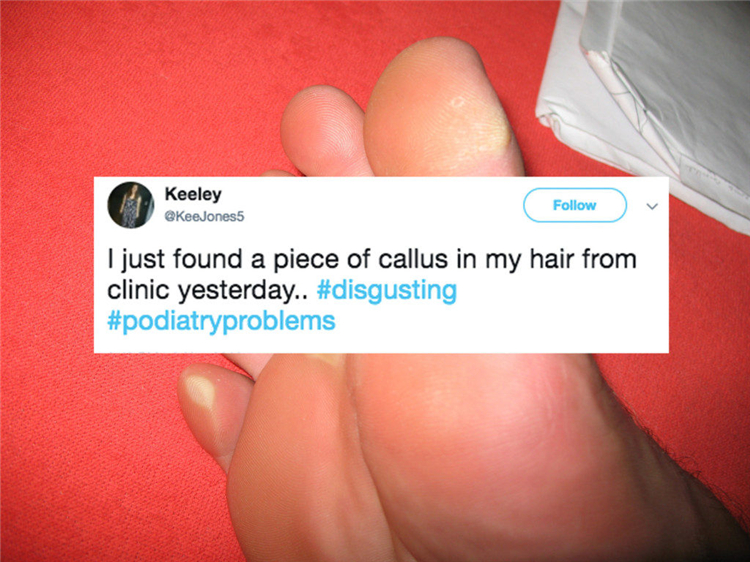 21. 所以脚指甲有时很难剪,剪掉还会乱喷 (脚皮也是):“我刚发现我头发里有脚皮,昨天在诊所时跑进去的…”