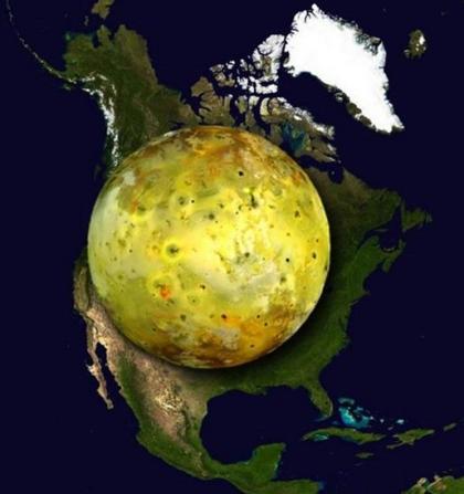 木卫一从地质学上讲是太阳系中最活跃的物体,它拥有超过400座活火山。我们可以对比一下,北美洲大约有100座活火山。