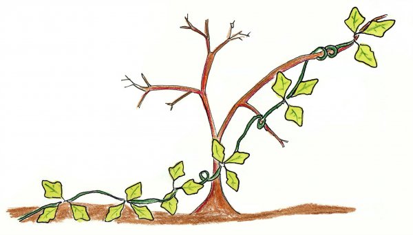 Gianoli和Carrasco-Urra认为也许在两种植物之间发生了点什么。他们猜测灌木或者树木散发在空气中的化学物质飘到了Boquila这边,就像这样: