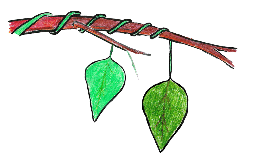 可一旦Boquila trifoliolata的藤蔓爬上宿主植物,它的叶子形状就变了。现在它们看上去是这个样子,变得更长更狭窄了: