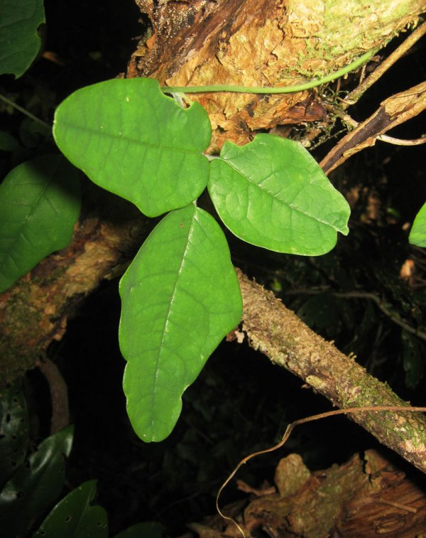 但几年前的某一天,植物科学家Ernesto Gianoli和他的学生一起在智利雨林里漫步的时候,遇见了Boquila trifoliolata。他们停下来,发现了这一不同寻常的植物。他们看到Boquila trifoliolata在森林地面上的藤蔓长这样,看起来圆圆的: