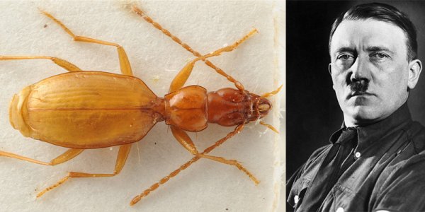 Anophthalmus hitleri是一种发现与斯洛文尼亚洞穴中视觉退化的甲虫。德国收藏家Oscar Scheibel在1933年时为了表示对刚刚获得选举成为元首的希特勒的敬畏,将甲虫冠名希特勒。不知道当时元首心中作何感想,是否在刹那间有将他丢进毒气室的想法。