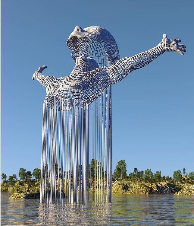 由艺术家Oliver Voss.所设计的大型洗澡女子雕像,可放在在湖面展示,让观众直击女子的头部及膝盖,仿佛来到了巨人国,游客看着看着都不想走了。