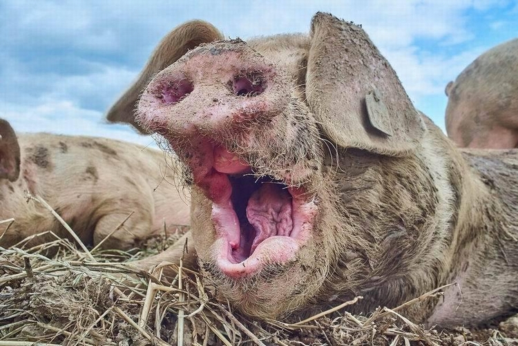 打哈欠和汗腺:猪没有正常的汗腺组织,因此它们无法像多数哺乳动物通过汗水调控体温,这就是为什么在炎热天气里猪喜欢在泥浆或者冷水中打滚。一些研究人员认为,猪通过打哈欠起到类似的作用,可以降低体温。