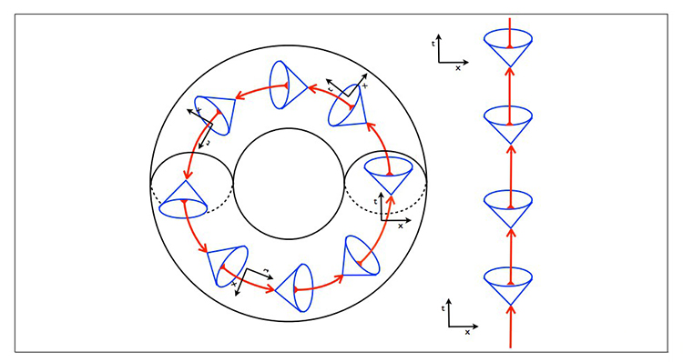 这两位研究人员在论文中解释:“这是一个匣子 沿着一个圆形路径,穿越时空“向前”行进,然后“向后”行。